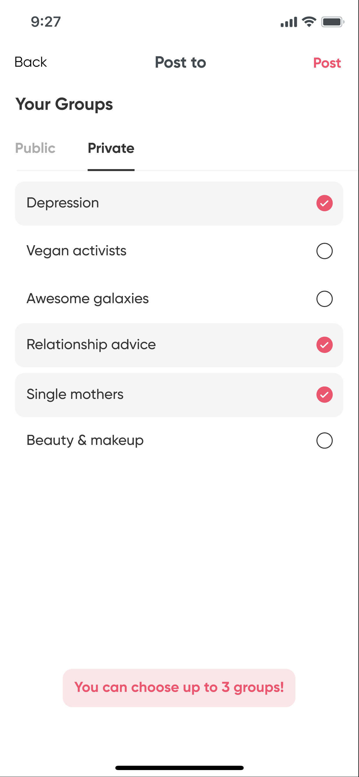 We’re the social networking app building a better digital world for women and non-binary folks. Whether you want to ask for support, make meaningful connections, or get in-depth self-development advice from the experts, we have a place for you!